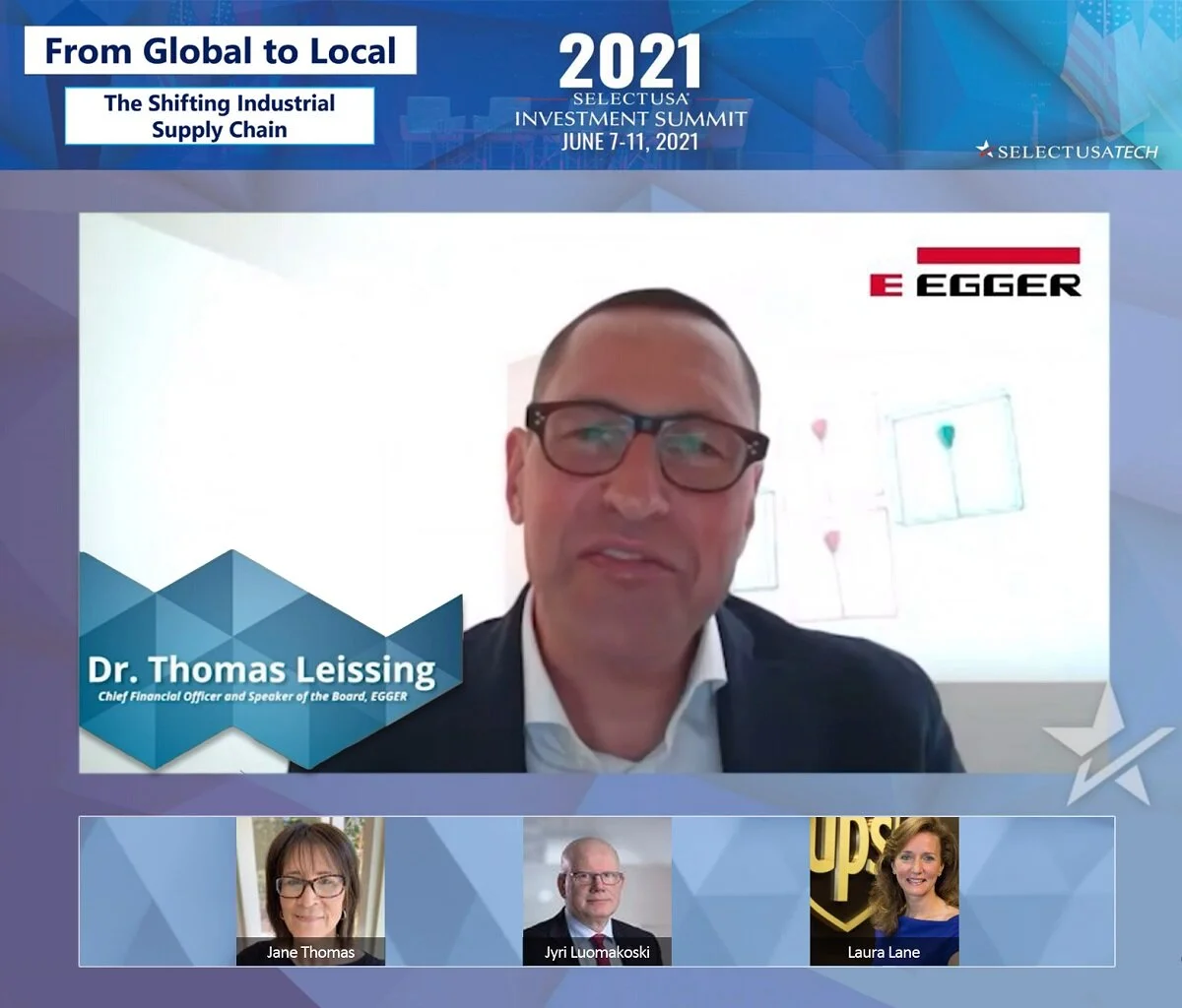 During this year’s supply chain plenary opening, moderated by Laura Lane, Austrian Dr. Thomas Leissing, CFO of the EGGER Group, and co-panelists Jyri Luomakoski (Uponor Group) and Jane Thomas (Teijin Holdings USA) shared insights on securing reliable supply chains for investments.